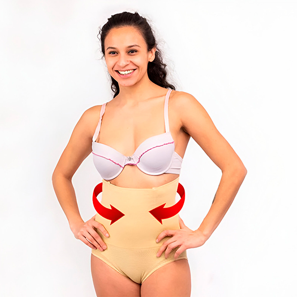 Die hohe Taille des Höschens lässt Sie schön geformt aussehen und kaschiert überschüssige Haut am Bauch, um die Taille herum und am Gesäß.